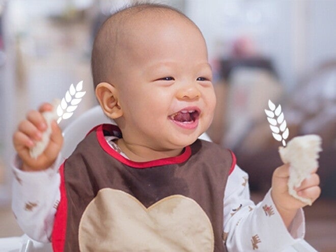 Gluten is a protein found in grains such as wheat, barley, and rye, and people can be allergic to the proteins found in these foods. Celiac disease, on the other hand, is an autoimmune condition where the body’s immune system reacts to gluten and causes damage to the lining of the intestine. Babies with family members who have celiac disease may be at greater risk of developing the condition. Current guidelines suggest that foods containing gluten (such as many breads, pasta, and cereals) be introduced when starting complementary foods for all healthy babies. Start with small amounts, and offer these first tastes at home, rather than at a restaurant or daycare centre, in case of any reaction.